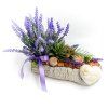 Přírodní dekorace v jemném a harmonickém stylu spojuje levanduli, kamínky v cihlovém odstínu, mušle a sukulenty do originální kompozice. Fialová stuha dodává aranžmá jemný nádech. Pietní aranžmá přináší kousek mořské atmosféry.
