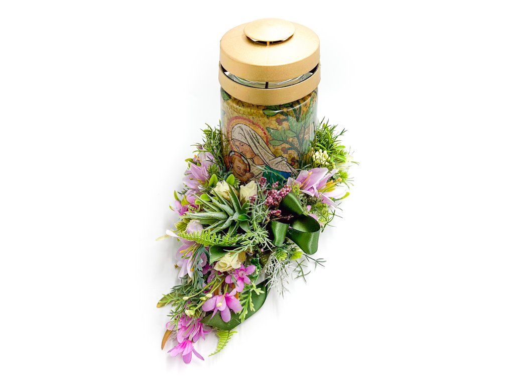 Hřbitovní dekorace se sklem a vkladem, který poskytuje až 36 hodin hoření.