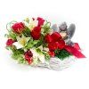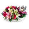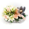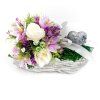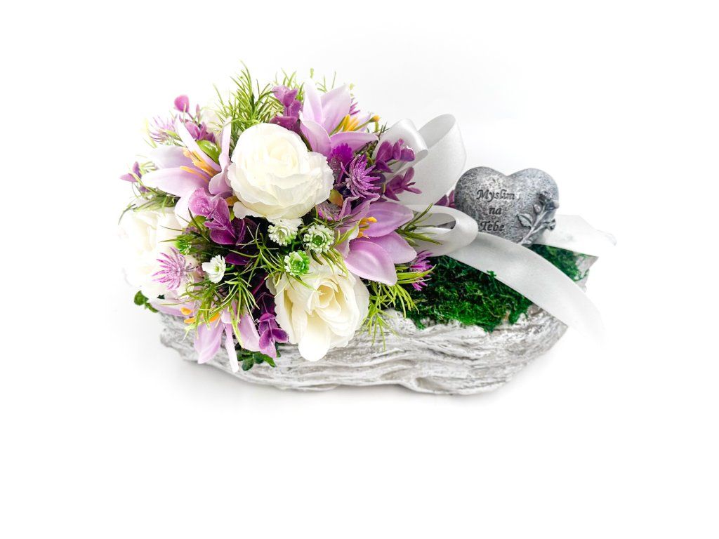 Betonová miska s efektem březové kůry, vyplněná směsí květů vypíchaných do kulatého tvaru. Kombinace květů je laděna do vyváženého celku, který působí elegantně a vkusně. Aranžmá vhodné na pietní místa. Na stužku lze doplnit text dle vlastního přání za příplatek 50 Kč.