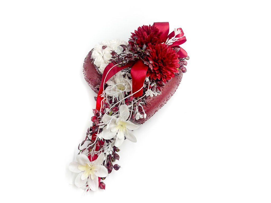 Betonové srdce je ideální volbou pro ty, kteří hledají vkusnou, odolnou a zároveň citlivě působící dekorací s hlubším významem. Červené květy symbolizují lásku a vzpomínku, bílé pak čistotu a klid, díky čemuž je aranžmá vhodné pro pietní místa, hřbitovní dekorace. Aranžmá lze doplnit stuhou s vlastním nápisem dle vašeho přání za příplatek 50 Kč.