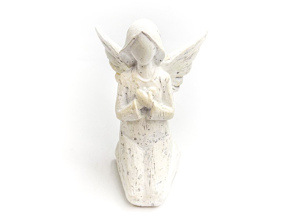 Keramický anděl klečící - bílý