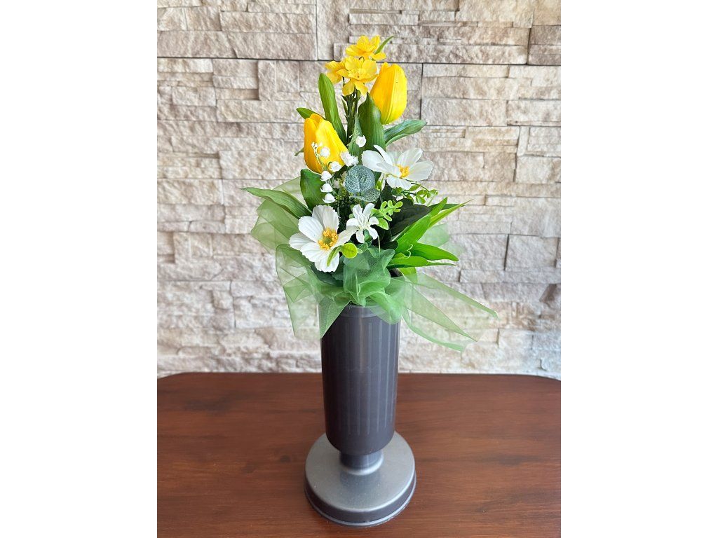Smuteční kytice z umělých květů. Ideální do vázy na hrob. Různé barevné varianty.