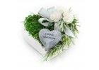 Betonová miska ve tvaru srdce nazdobená mechem a světlými květy. Betonový korpus si vyrábíme sami, při výrobě dbáme na zvýšení odolnosti vůči mrazu a dešťům. Více barevných...