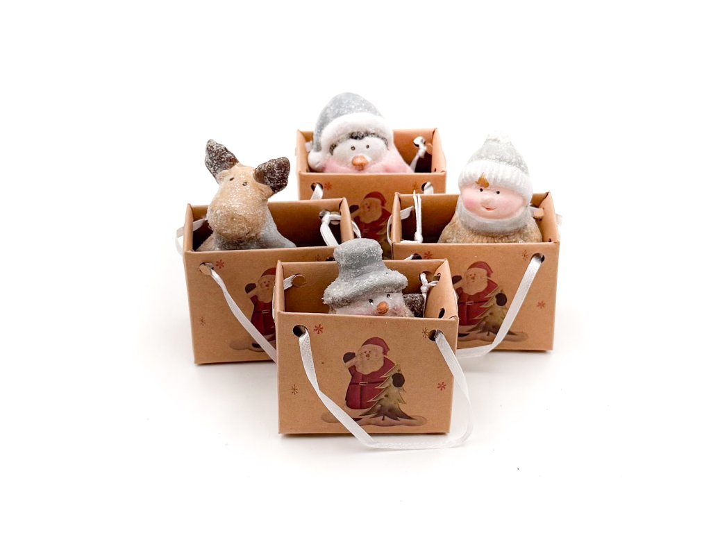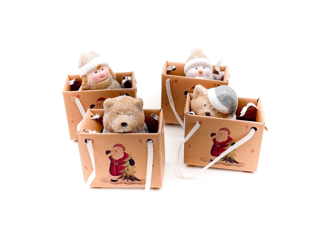 Roztomilé vánoční postavičky v papírové taštičce. Ideální vánoční pozornost. Různé druhy.